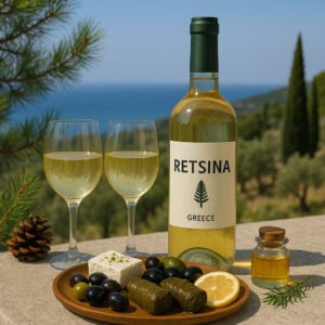 Discover Retsina, Greece’s unique pine-resin wine. Experience its crisp, aromatic flavor and ancient winemaking tradition.